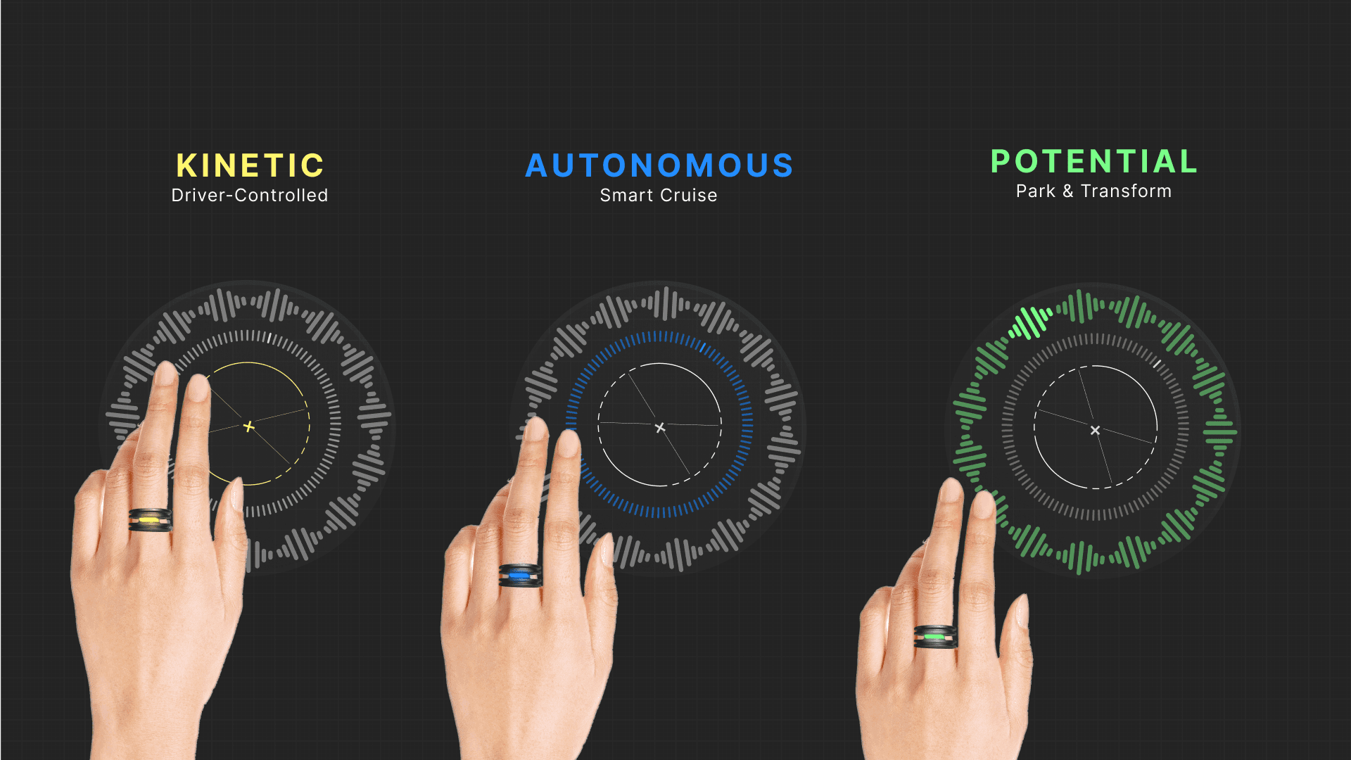 Symbolized by circular design elements in the vehicle and architecture, representing unity, focus, and harmony.