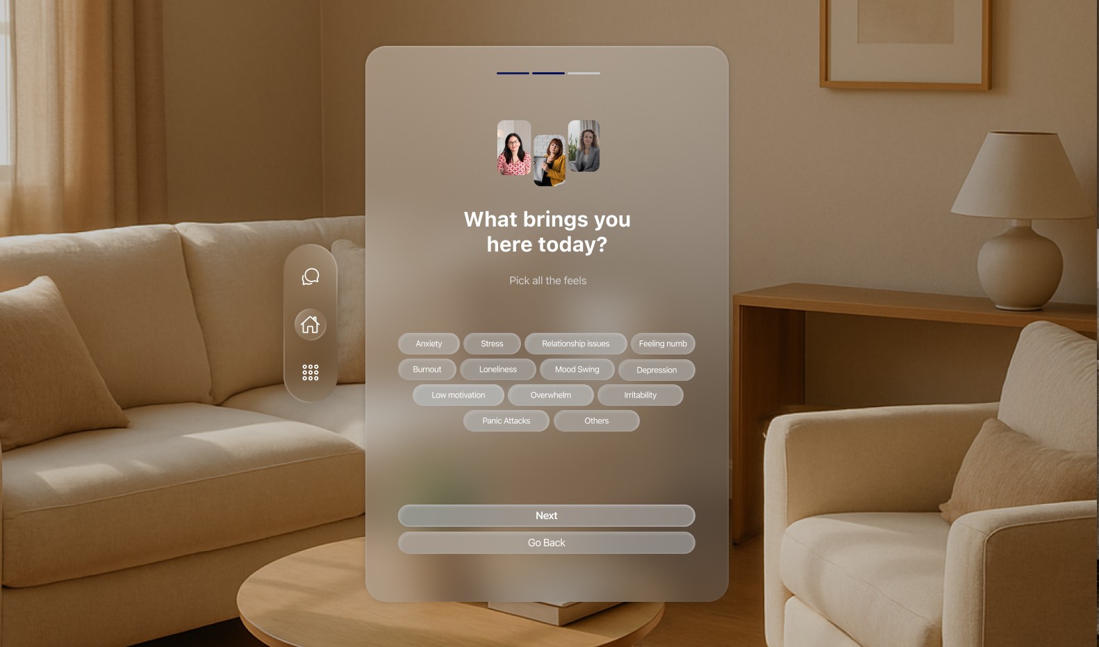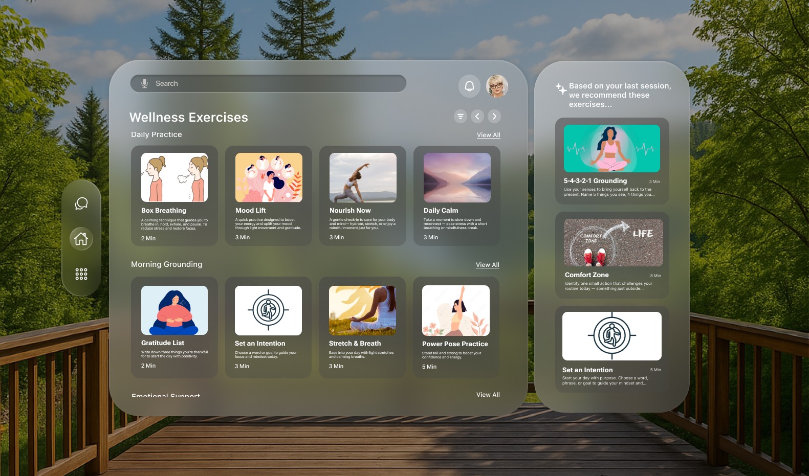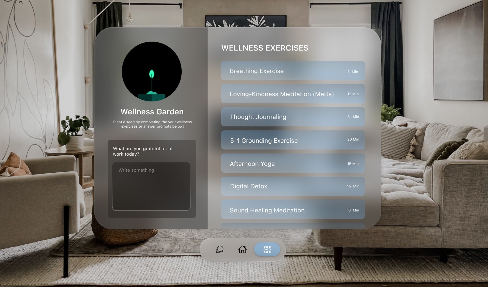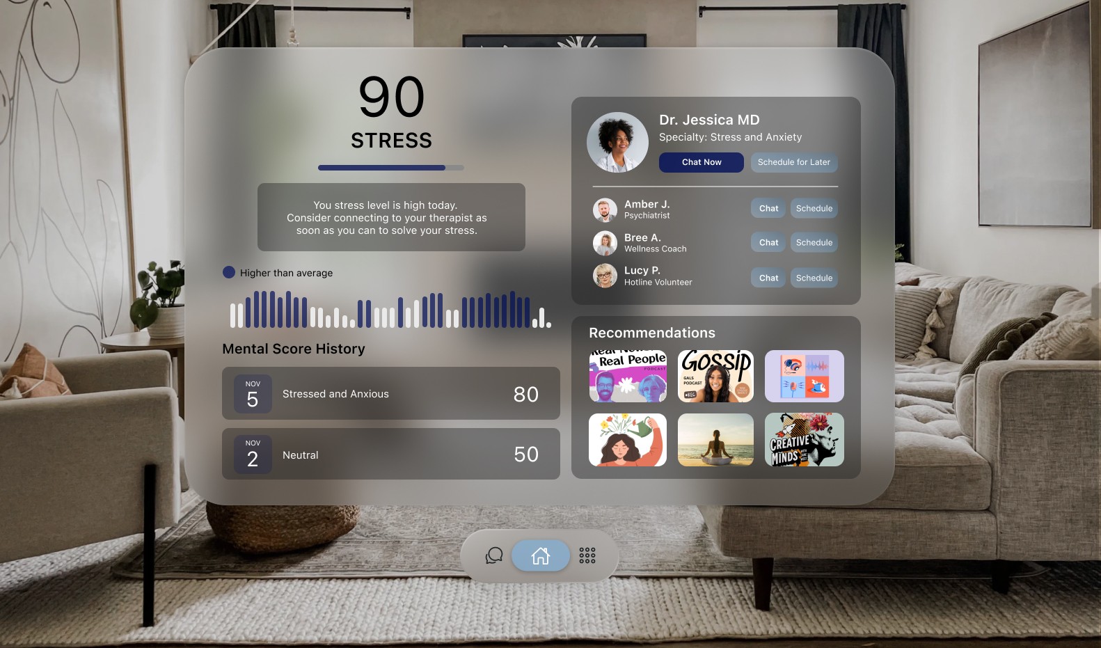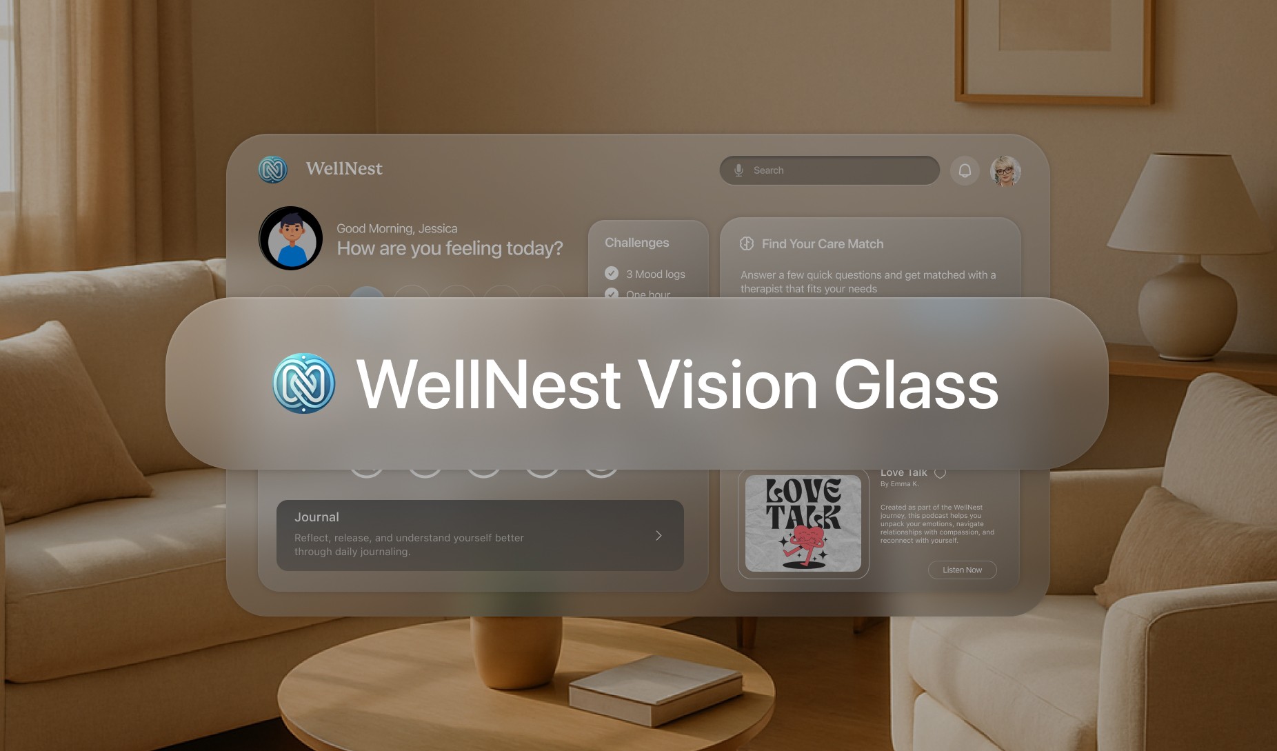 WellNest Vision Glass reimagines wellness by bringing the WellNest app into Apple Vision Pro, creating an immersive space where therapy, self-care, and mindfulness seamlessly blend into daily life. With interactive sessions, personalized content, and a calming virtual environment, users can nurture their mental well-being anytime, anywhere